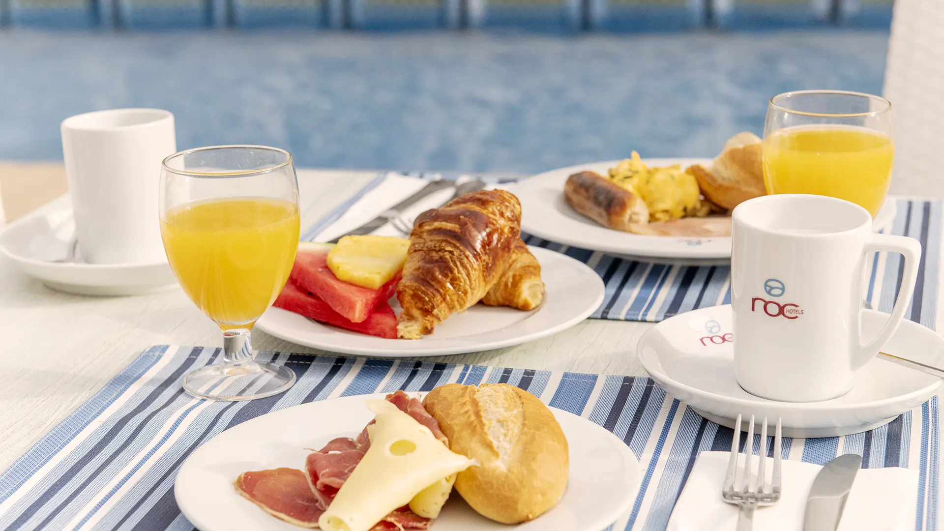 In den Suites ROC Portonova genießt du ein reichhaltiges Frühstück in unserem Buffet-Restaurant sowie Cocktails und Snacks à la carte an der Poolbar – ideal für entspannte Genussmomente.