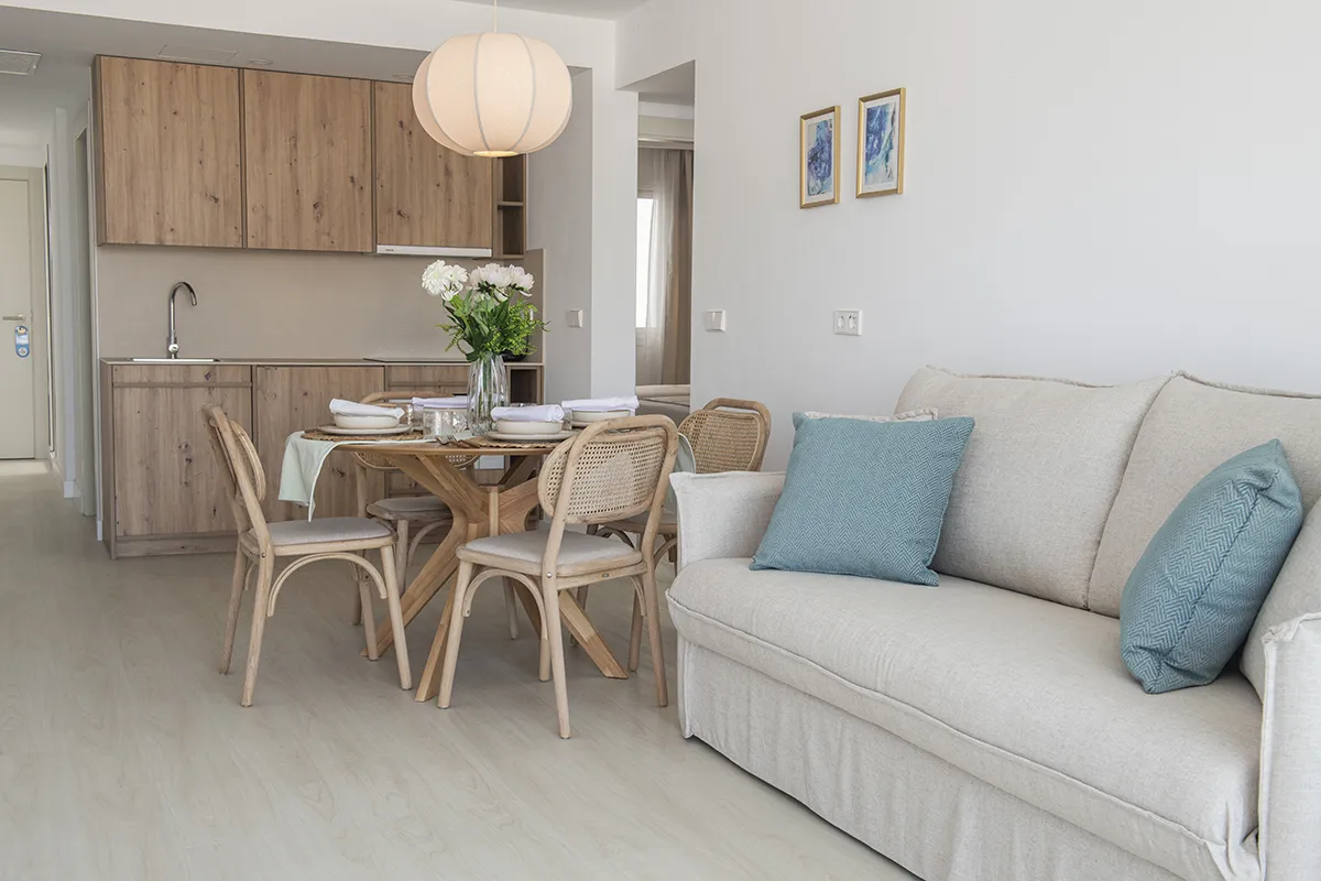 Una amplia suite diseñada para vivir Mallorca en compañía. Espacios diáfanos y luminosos, la independencia de un apartamento y la playa a un paso. Un entorno pensado para relajarse, compartir y crear recuerdos inolvidables.